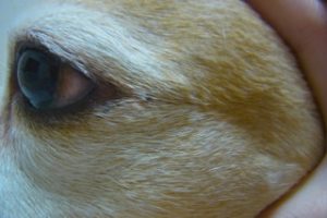 目尻についているのですが、わかりますでしょうか。患部を湿らせて、拡大してみます。
