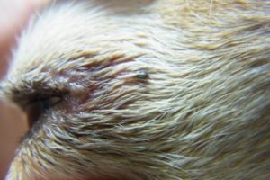 ●マダニに噛まれたわんちゃんの写真です。