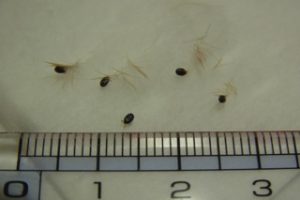 取り除いた「マダニ」です。皮膚に寄生したまま放置すると、吸血しこの3~4倍の大きさになります。