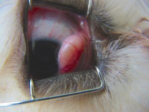 瞬膜腺突出(チェリーアイ)の治療ですが、抗炎症作用の点眼液で解決することもありますが、多くの場合には手術が必要になることが多いです。
