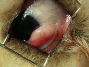 「チェリーアイ」と呼ぶ方が一般的かも知れません。瞬膜は、目頭にある白い膜での事で、「第三眼瞼」(3番目のまぶたという意味)と言ったりもします。