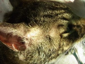 ちなみに、猫ちゃんは犬とくらべて「外耳炎」は多くありません。「耳ダニ感染症」を除外すると、自己外傷性かアレルギー、腫瘍などが多い印象です。